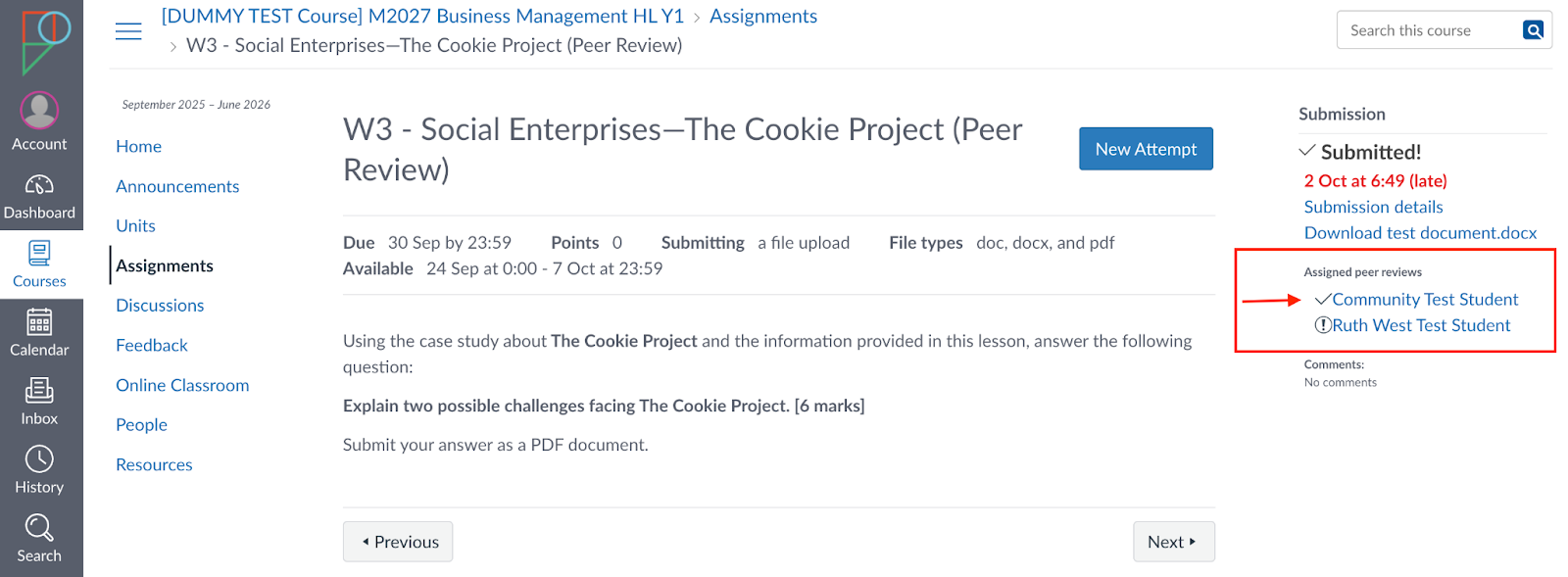 Once a Peer Review task has been completed, you will see a green tick beside it, as shown in the screenshot below.