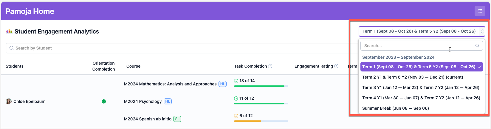 Select a student from the left-hand drop down: