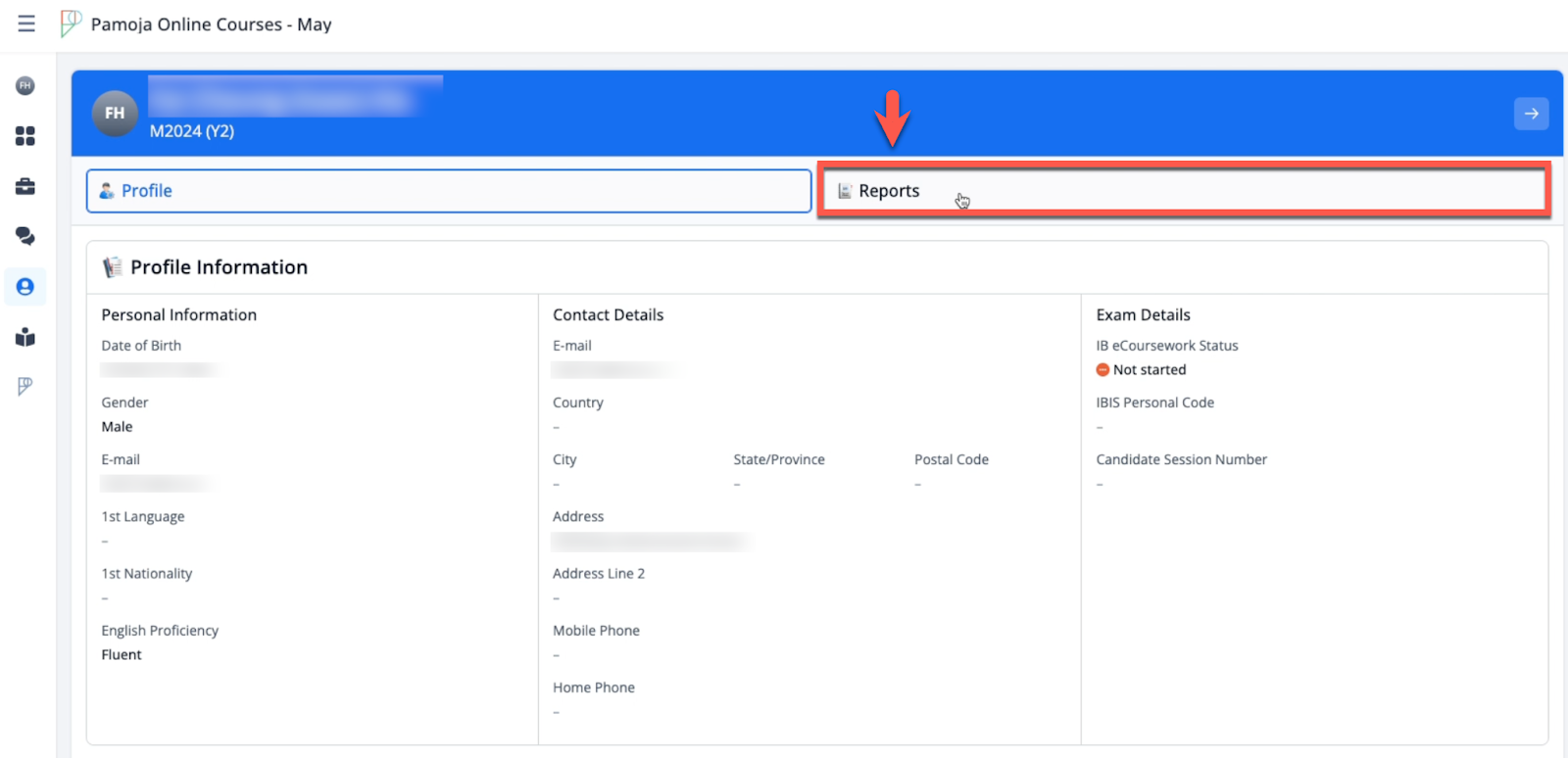 4. The system will lead you to the student’s academic profile. Click the ‘Reports’ button.