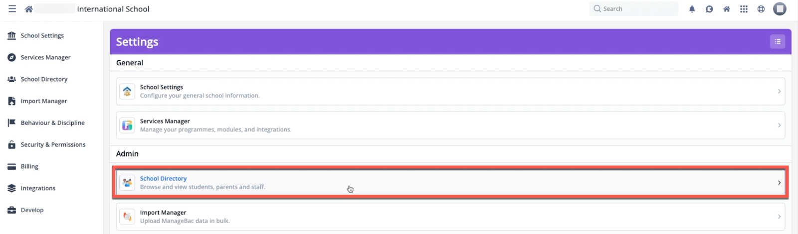 School ManageBac Account - Site-based Coordinator (SBC) Access