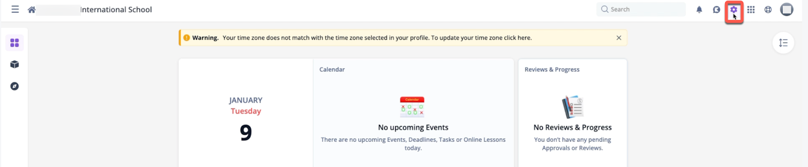 1. Log into your School ManageBac account. Navigate to the toggle which is found at the top right of your screen.