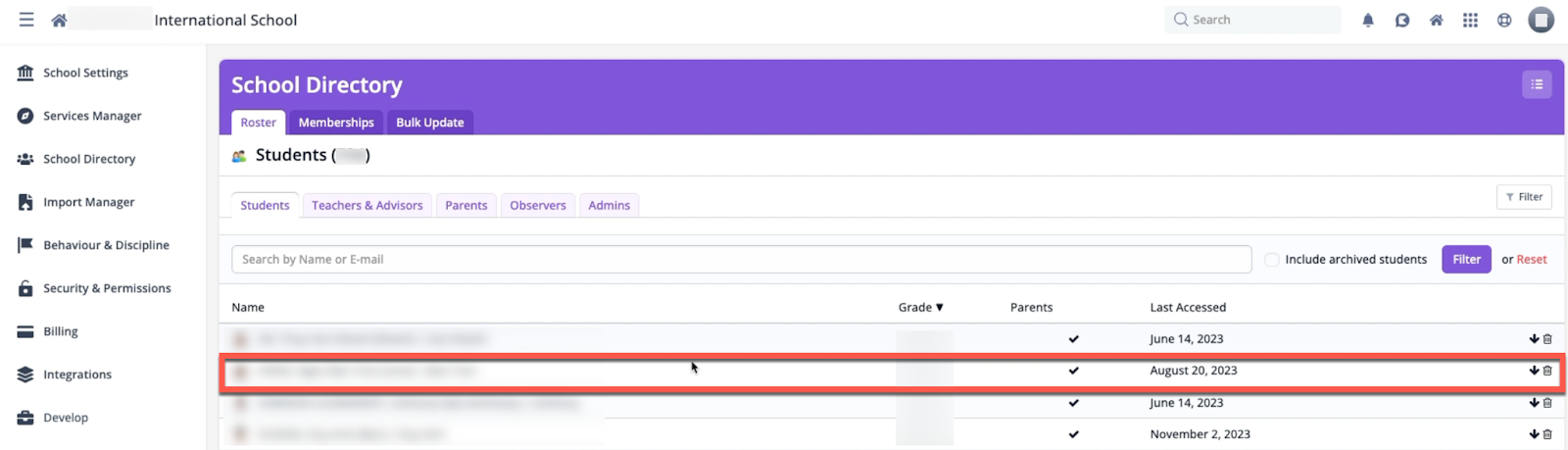3. Enter the student's name in the search bar, and select the student from the directory.