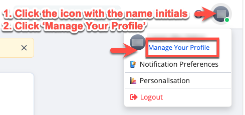 1. Log in to your School ManageBac account. Click the round icon in the upper right corner.