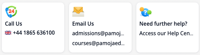 Pamoja Home also contains contact details including telephone and email, and a link to our Help Centre where you will find the articles displayed here on our home page, and many more.