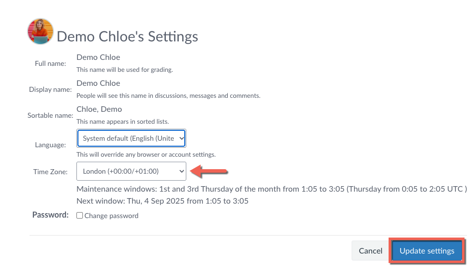 This article explains how to update your account settings, including your time zone and password.